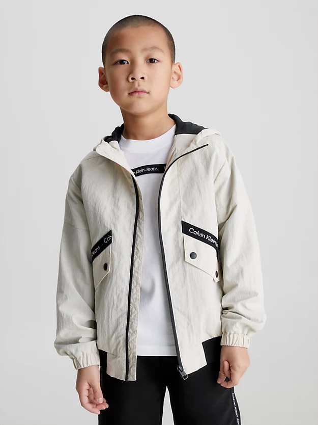 • Calvin Klein Jeans logo tape above pockets and on hood and interior